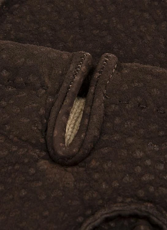 This unique leather has been compared to the finest leathers in the world and shares a similar pattern as peccary leather. It is soft, supple and delicate to the touch.