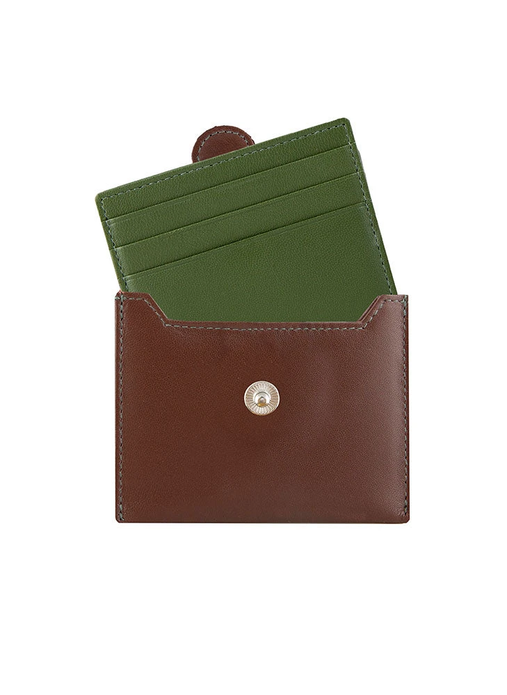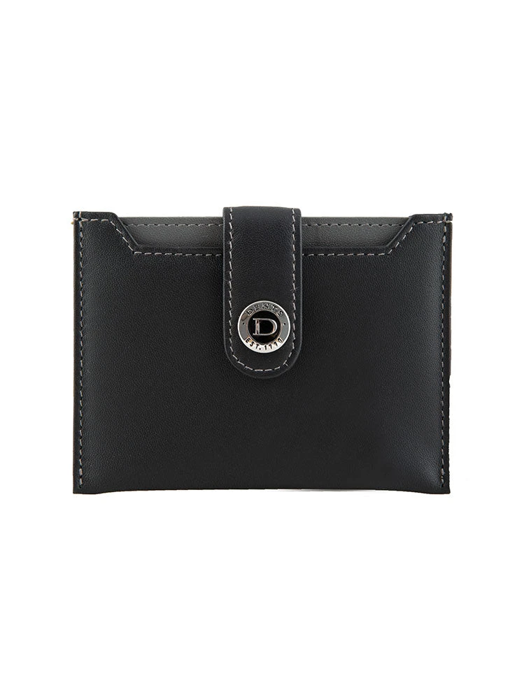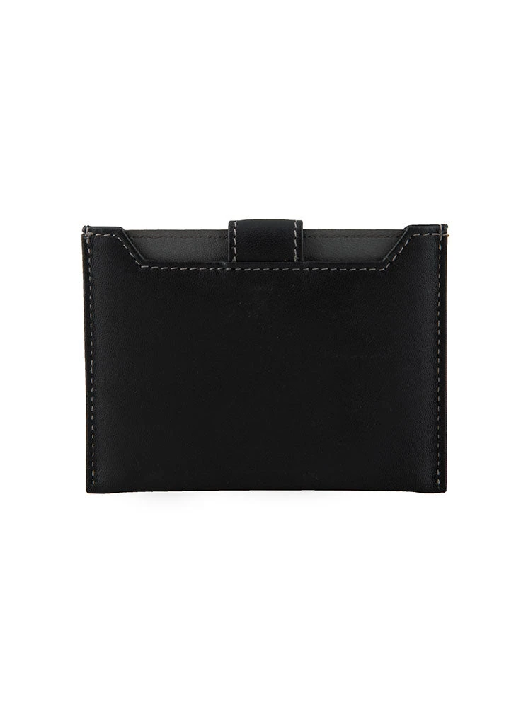- Tab with shiny silver pressed stud clasps the card holder together for a compact shape