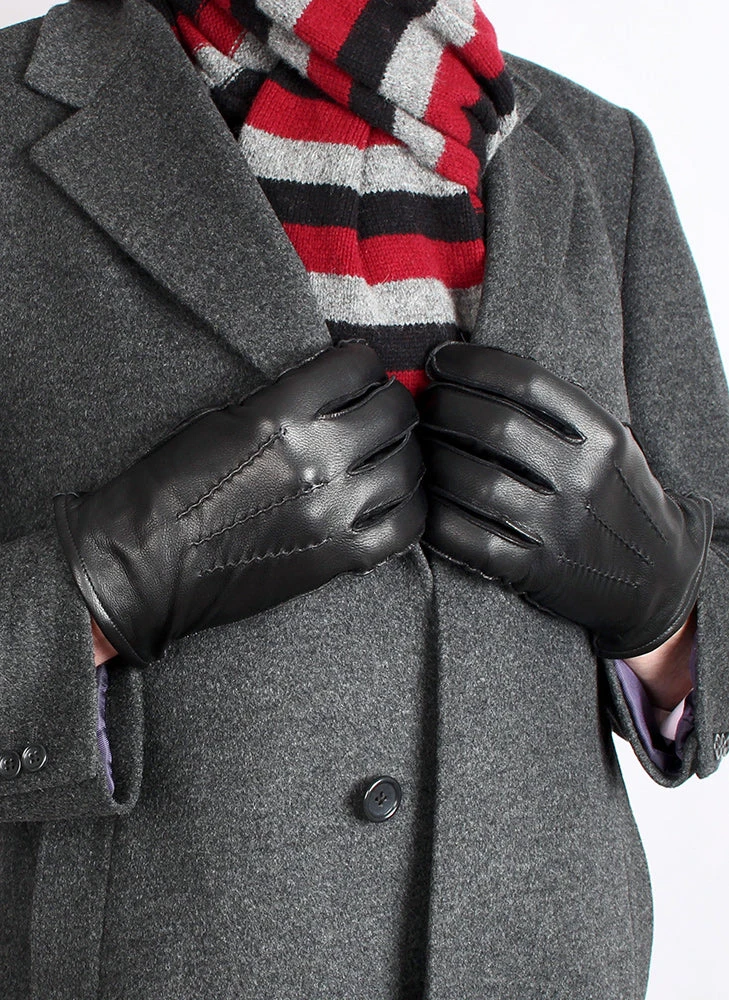 Treat your everyday with our casual-cool leather gloves. They boast handsewn decorative stitching for a dash of distinction, while refusing to be fussy and formal. Instead, there’s an elasticated inner wrist to keep the gloves secure and prix seam stitching for no-frills nonchalance. They’re big on comfort with acrylic lining keeping hands cosy and warm – perfect for when the weather gets cold. Offered in classic black and brown shades, these premium leather gloves are for gentlemen with a timeless sense of style.