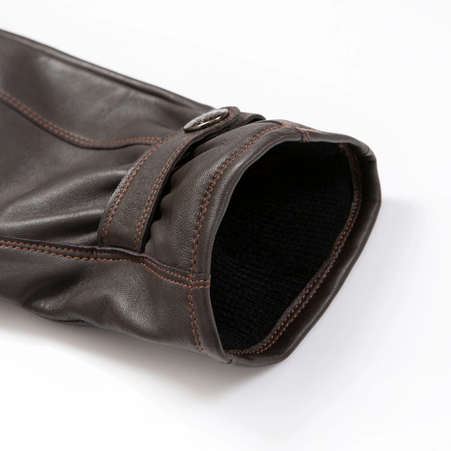 Dress with distinction thanks to Haworth, our leather gloves with contrast stitching. These winter gloves are made from premium hairsheep leather, a fine leather that is both strong and soft, stretchy and smooth and oh-so-comfortable. This leather is designed with touchscreen technology so there’s no need to remove your gloves and get cold hands when using your mobile phone. These phone-friendly gloves are also suitably stylish with delicate stitching in a contrasting colour bringing a delicate touch to your winter wardrobe. Further finishing details include the strap fastening, elasticated wrist and cosy lining, all adding up to a classic pair of gloves certain to be loved for years to come.