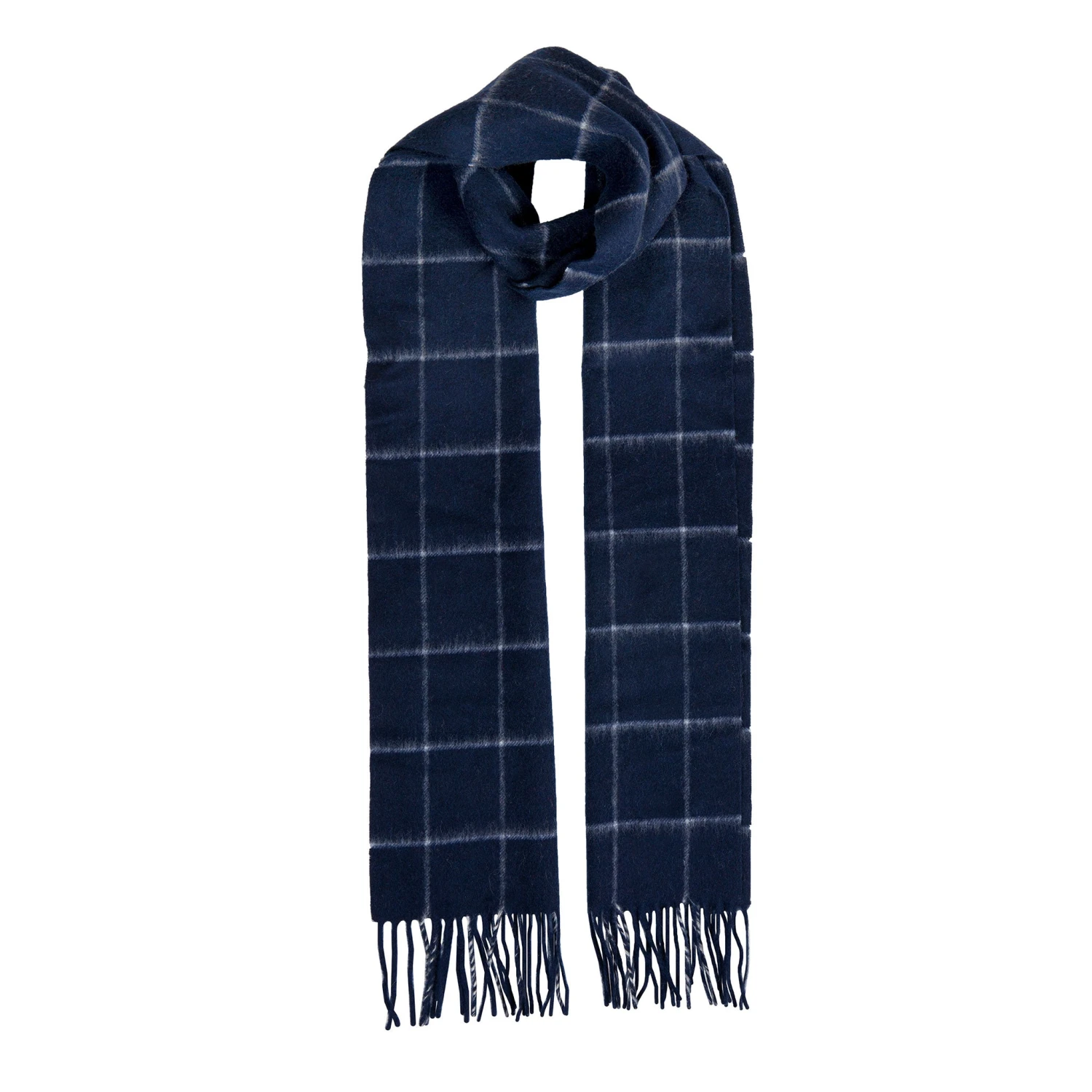 Wrap yourself in luxurious comfort thanks to this lambswool scarf. Made using wool from the shearing of young sheep, this high-quality yarn is super-soft and great for regulating body heat – so you won’t get too warm when wearing. The scarf features a window pane check design that evokes a vintage flavour befitting all well-dressed gentlemen. Pair with smaller scale patterns to give this stylish scarf centre stage.