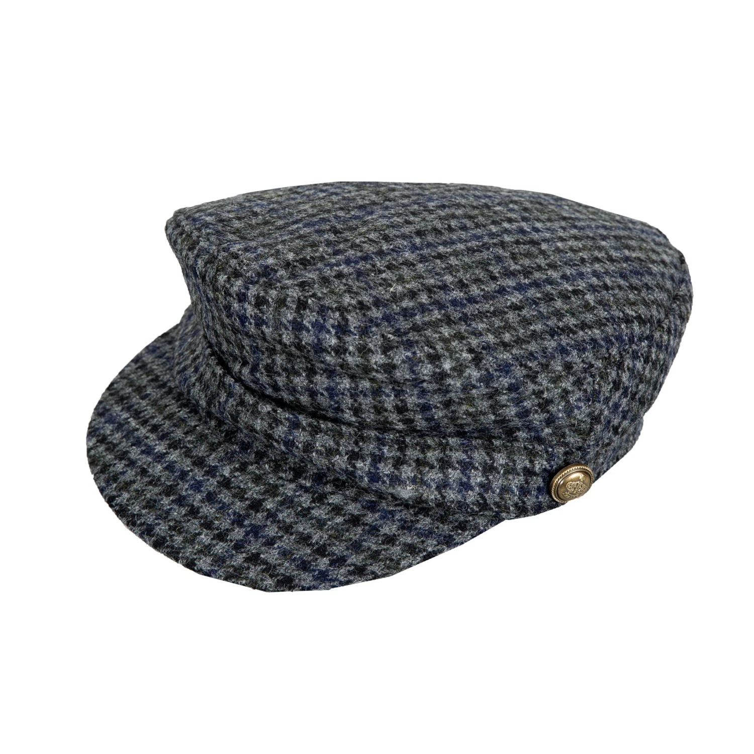 Classic dogtooth fabric is celebrated in this fiddler cap style.