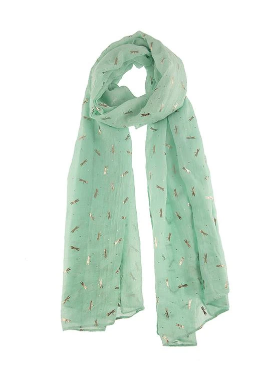 This lightweight scarf features our delicate foil print dragonfly print.