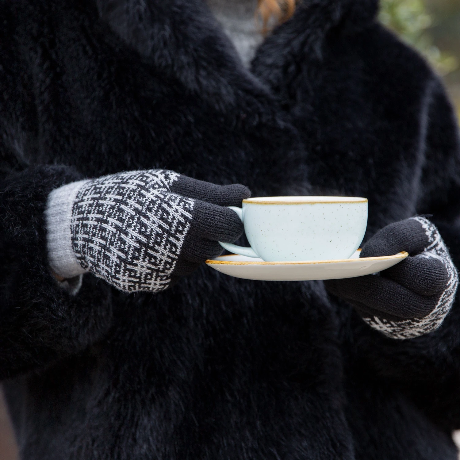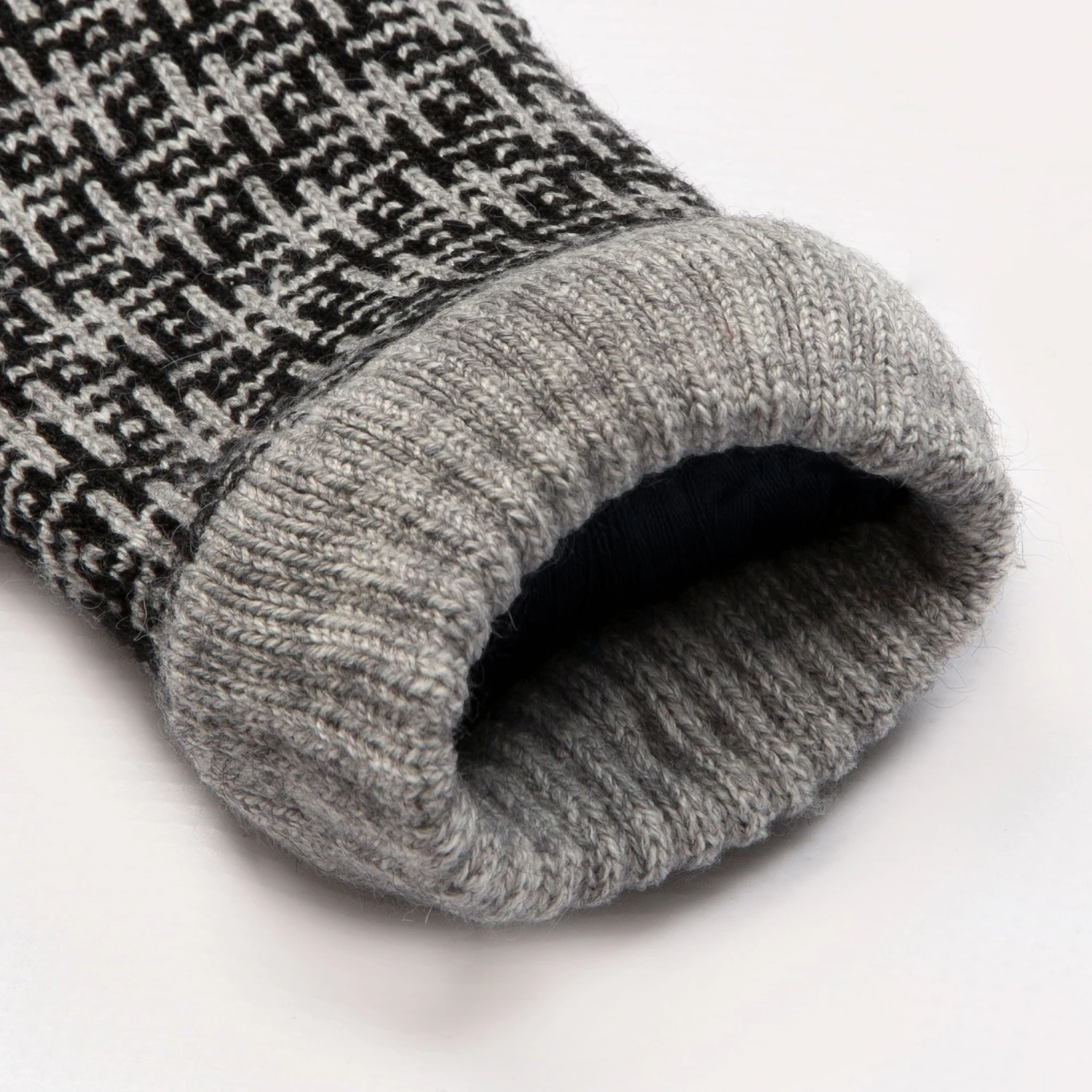 - Intricate jacquard pattern of hash symbols brings unique style