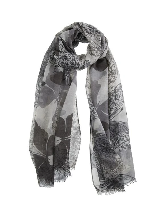 Delicate butterflies adorn this scarf in a large, layered print focusing on a tonal colour palette.