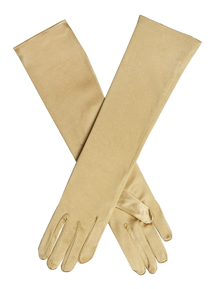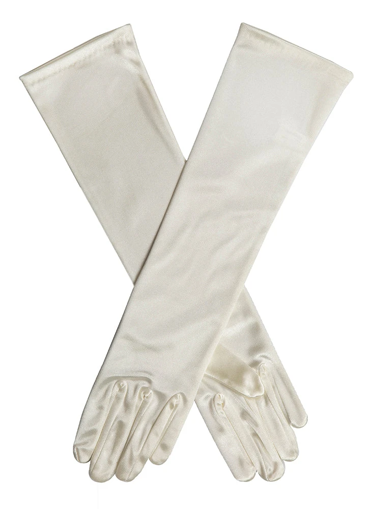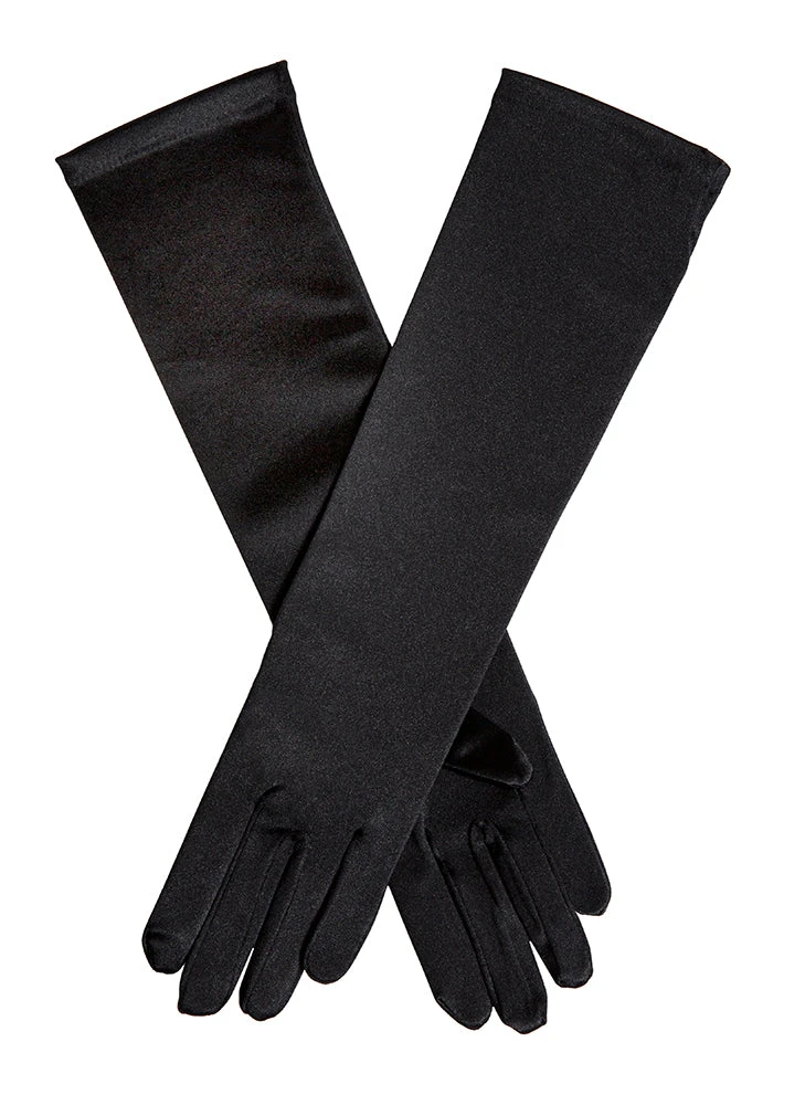 Elevate your evening look with our mid-length satin gloves. They extend below the elbow, an elegant alternative to short, occasion gloves and full-length, opera gloves – perfect if looking for satin gloves that don’t go beyond the elbow. This length takes you from day to night, working well with short sleeves or spaghetti straps. And these soft and shimmery satin gloves hold their shape thanks to a light stretch in the fabric. Glamour that doesn’t have to try too hard.