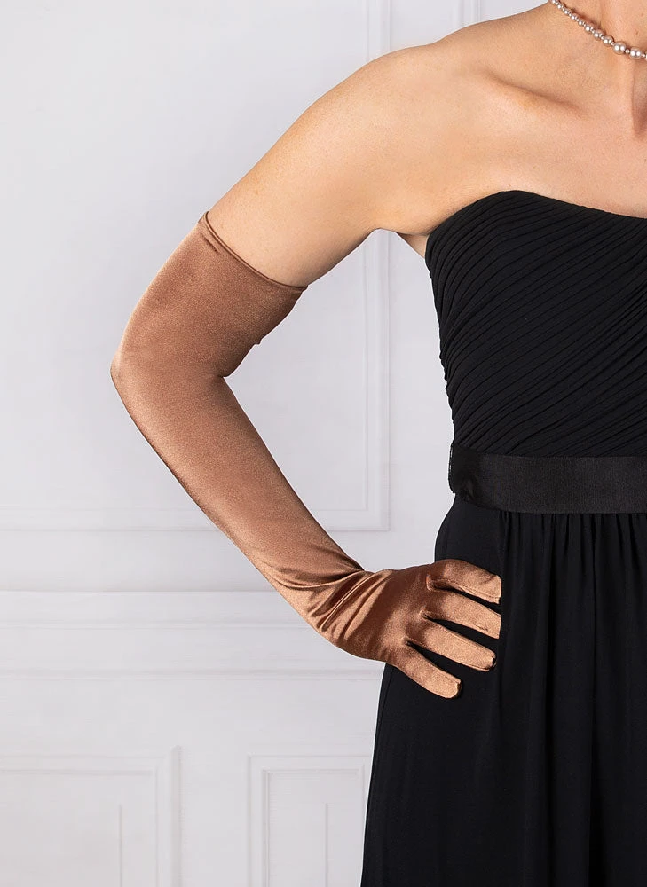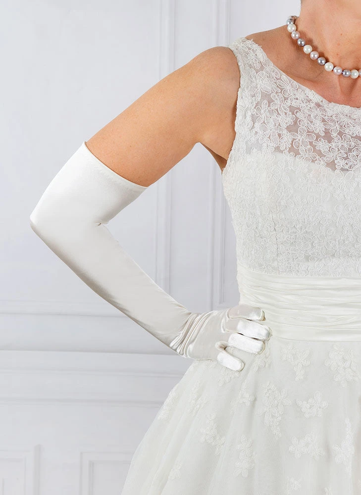 - Gloves are opera length – pairs elegantly with bare shoulder