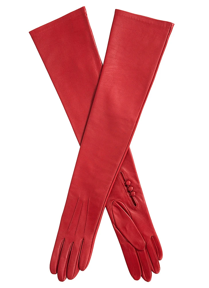 Own the night in our unforgettable opera gloves. The longest leather gloves in our collection, they extend far up the arm for unrivalled coverage that effortlessly oozes old school glamour. Made from finest hairsheep leather, they boast a buttery softness and are unlined for a close, second-skin feel. The silhouette is kept streamlined and sleek thanks to the musketeer palm opening with covered buttons and loops. This maintains the flattering fit around the wrist while helping you comfortably put the gloves on and take them off. Choose from four stunning shades to complement your formal look. Whether dressing for a black-tie dinner, glitzy party or even a red carpet event, simply pull on your Polly gloves and get set to steal the show.