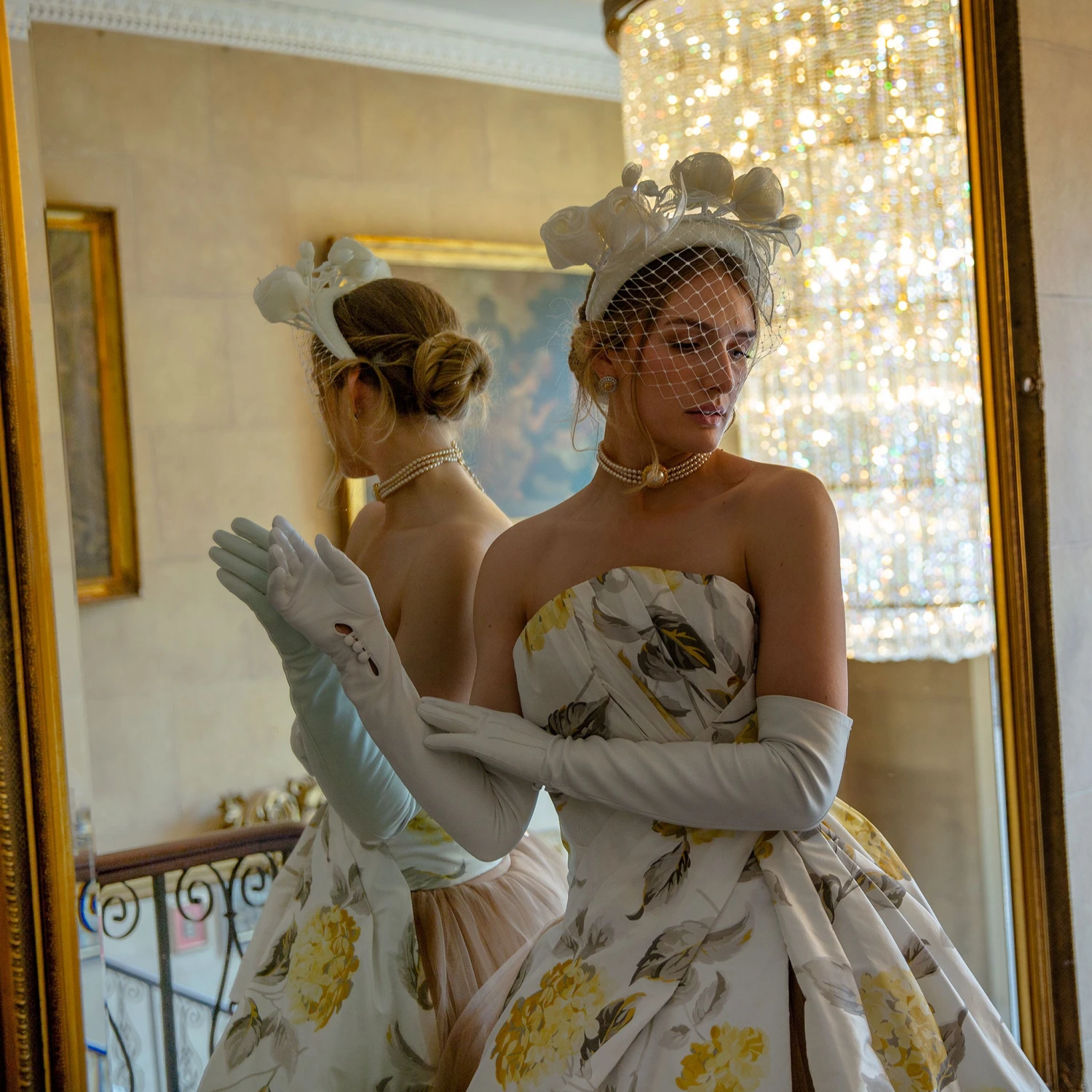 - Gloves are opera length – pairs elegantly with bare shoulders