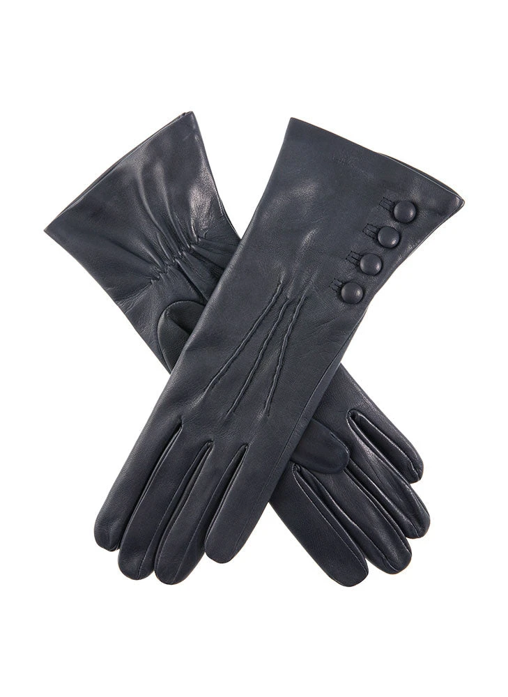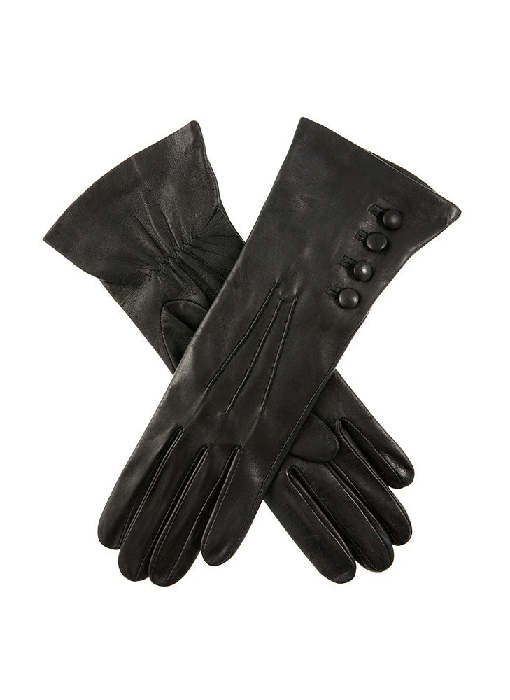 Women’s Three-Point Silk-Lined Leather Gloves With Buttons