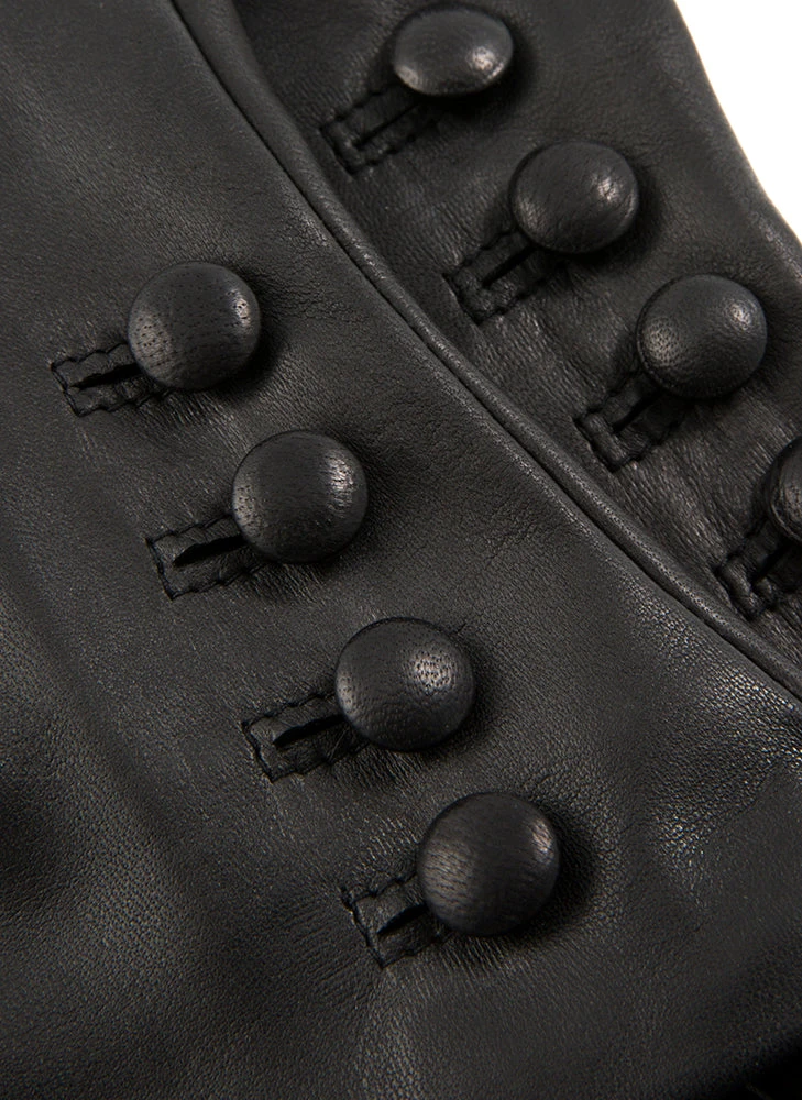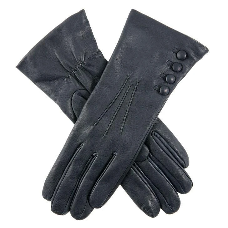 Women’s Touchscreen Three-Point Cashmere-Lined Leather Gloves With Buttons